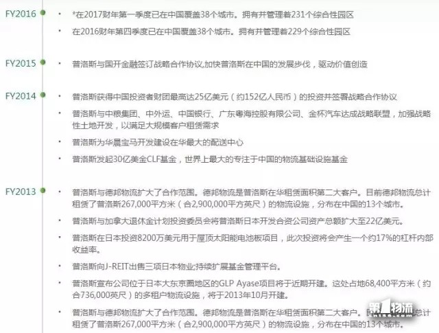 普洛斯致力于為全球最具活力的制造商、零售商和第三方物流公司不斷提高供應(yīng)鏈效率,達(dá)成戰(zhàn)略拓展目標(biāo);通過全面的開發(fā)、運(yùn)營(yíng)、基金管理和金融服務(wù),促進(jìn)領(lǐng)先的物流生態(tài)圈發(fā)展。其主要發(fā)展歷程及合作項(xiàng)目如下: