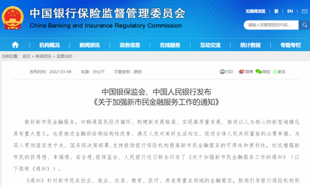 為支持鼓勵(lì)銀行保險(xiǎn)機(jī)構(gòu)提高新市民金融服務(wù)的可得性和便利性,切實(shí)增強(qiáng)新市民的獲得感、幸福感、安全感,銀保監(jiān)會(huì)、人民銀行近日聯(lián)合印發(fā)了《關(guān)于加強(qiáng)新市民金融服務(wù)工作的通知》(以下簡(jiǎn)稱(chēng)《通知》)。
