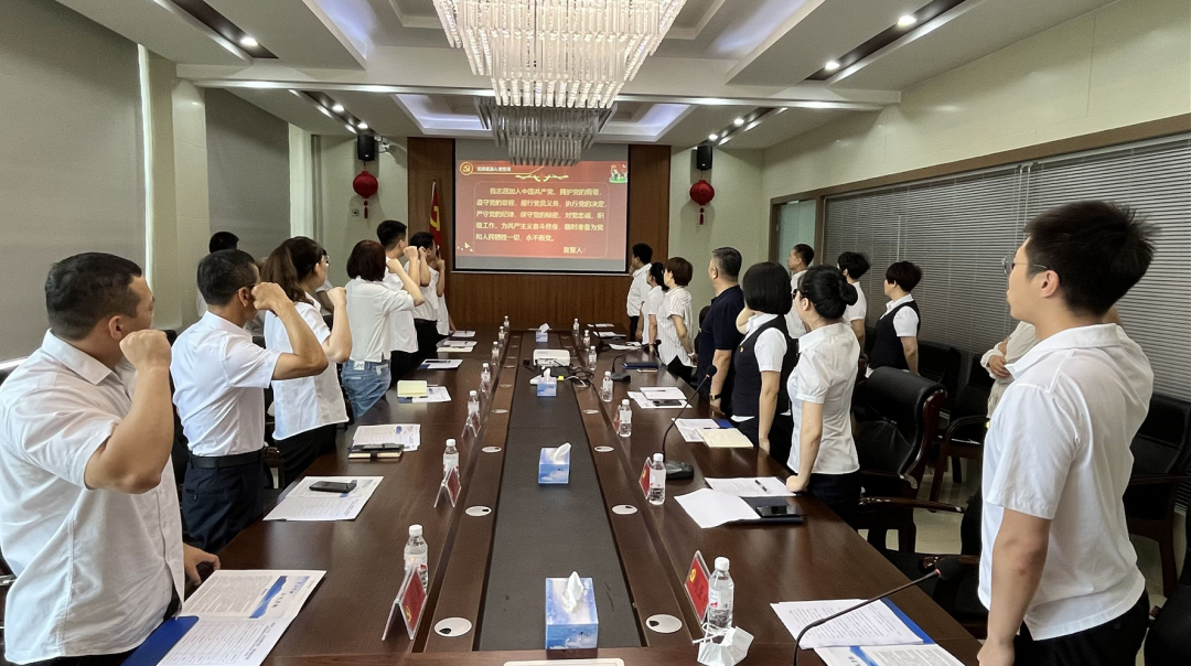 全體黨員面向鮮紅的黨旗,舉起右手,重溫入黨誓詞。豪邁的錚錚誓言,表達(dá)了鼎和全體黨員對黨和人民的無限忠誠,堅定了為共產(chǎn)主義事業(yè)奮斗終身的決心。